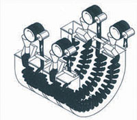 織物通過壓輥進入下一個堆置槽,在溶液漏斗中,織物吸取足夠溶液然后進入堆置槽,織物緩慢通過儲液罐使其有足夠時間在合適的溫度和化學(xué)條件下進行反應(yīng),每階段的反應(yīng)時間可獨立設(shè)定。