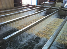 3、預(yù)洗部分采用平幅堆置和水洗,充分膨化,強力水刀穿透性水洗,浮色清洗更干凈。