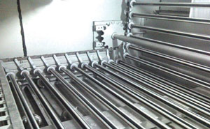 5、蒸箱內(nèi)掛布輥直徑為50mm的輥體,輕巧、堅(jiān)固,在使用中順著軌道自轉(zhuǎn),避免出現(xiàn)橫檔印等瑕疵。